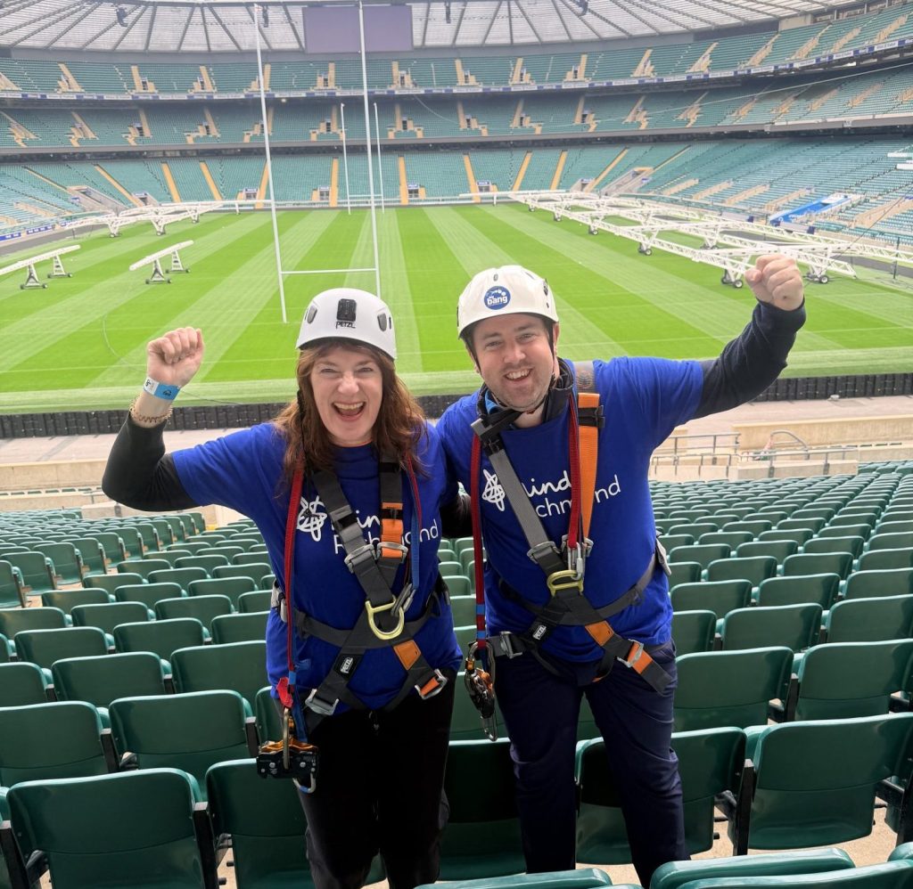 On Friday 17th October, Val Farmer and Murray Cook are taking fundraising to brand-new heights—literally! The two of us are strapping in to zipline from the very top tier of the legendary Allianz Stadium, Twickenham, gliding over the pitch where rugby greats have made history.